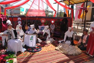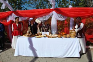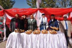 Ауылдың ақ жаулықты әжелері мен өнерлі қыз-келіншектері мәдениет үйі алдындағы алаңда ұлттық тағамдар көрмесін ұйымдастырып, қолөнер бұйымдарын көпшілік назарына ұсынды. Құрт, ірімшік, бауырсақ секілді дәмдермен келген қонақтарды сыйлаған ақ әжелердің мейірімді жүзінен қазақы қонақжайлылықтың шынайы белгісі сезілді. Сабау сабап отырған әже мен оған жәрдемдескен немеренің жарасымды бейнесі- ұрпақ сабақтастығының жарқын көрінісіне айналды.