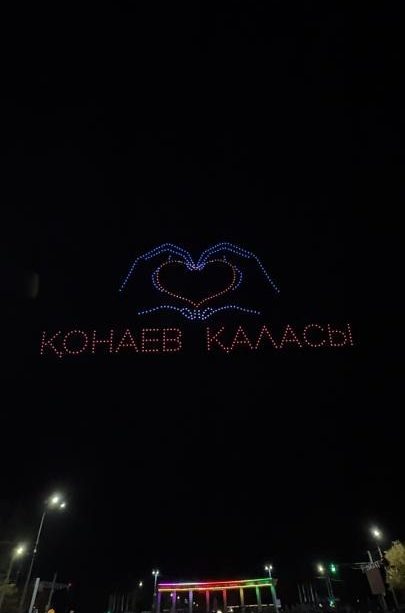 Шоудың соңында дрондар «25 қазан – Республика күні» және Қонаев қаласына деген махаббатты білдіретін жазулар мен бейнелер пайда болды.