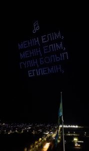 Дрондар шоуы барысында көкте халықты жігерлендіретін басқа да бейнелер пайда болды. Мысалы, Қазақстан картасы, Мемлекеттік Ту, ұлттық аспабымыз – домбыра мен ноталар, «Алтын адам» бейнесі, барыс, алма және басқа да композициялар, сондай-ақ әділетті әрі мықты мемлекеттің идеясын айқындайтын «Заң мен тәртіп — Закон и порядок» қағидалары көрініс тапты.