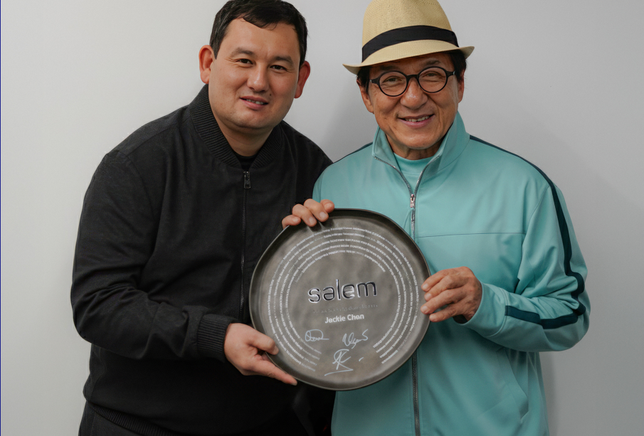 «Бала кезімнің кумирі Джеки Чанмен бірге түсетініме өте қуаныштымын», — дейді Рүстем Омаров.