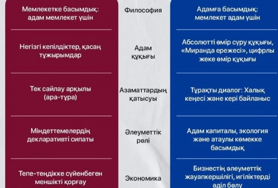 ​Ең басты өзгеріс — мемлекет пен адамның арақатынасы. Ескі жүйеде «адам мемлекет үшін» (яғни, адам — мемлекеттік машинаның тетігі) болса, жаңа тұжырымдама «мемлекет адам үшін» қағидасын алға қояды. Бұл демократиялық қоғамның ең басты белгісі.