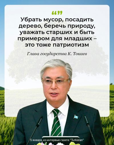 Патриотизм начинается с простых поступков. Не только с громких слов и больших дат, а с ежедневной ответственности за свою страну. ...Президент: «Қарапайым істер де — отаншылдықтың белгісі»