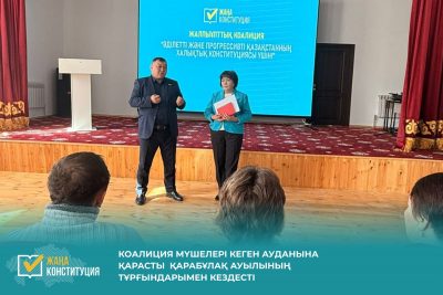 Әділетті және Прогрессивті Қазақстанның Халықтық Конституциясы үшін!» коалициясының мүшелері Қарабұлақ ауылының тұрғындарымен кездесіп, 15 наурызда өтетін республикалық референдумға шығарылған жаңа ...Мәдениет үйінің қызметкерлерімен арнайы кездесу ұйымдастырылды