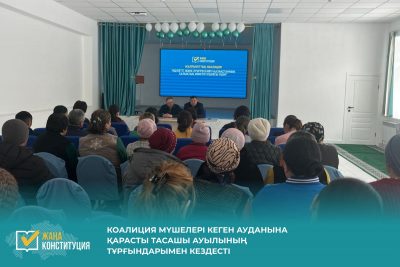 Конституция жобасы Тасашы ауылының халқына да түсіндірілді. Тасашы ауылының халқымен өткен кездесуде Конституциялық реформаның дайындалу кезеңдері мен мазмұны түсіндірілді. Коалиция ...Коалициясының мүшелері Қарабұлақ ауылының тұрғындарымен кездесті