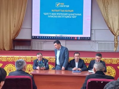 Конституциялық референдум – тарихи таңдау! Қазақстан халқы жаңа Конституция жобасын қабылдау үшін дауыс береді. Жаңа Негізгі заңда: • Әділетті Қазақстан ...“Қазақстан Республикасы Конституциясы – құқықтық мемлекеттің берік негізі ” тақырыбында Қарабұлақ ауылының тұрғындарымен мәдениет үйінде ...