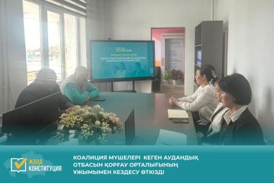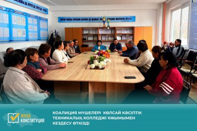 Коалиция мүшелері Отбасын қолдау орталығының ұжымымен кездесу өткізді. Кездесу барысында отбасылық құндылықтарды нығайту, әлеуметтік қолдау шаралары және тұрғындармен жүргізілетін түсіндіру ...Коалиция өкілдерінің кездесуі Жалағаш ауылында орналасқан Көлсай кәсіптік техникалық колледжінде жалғасын тауып, жаңа Конституция жобасын ...